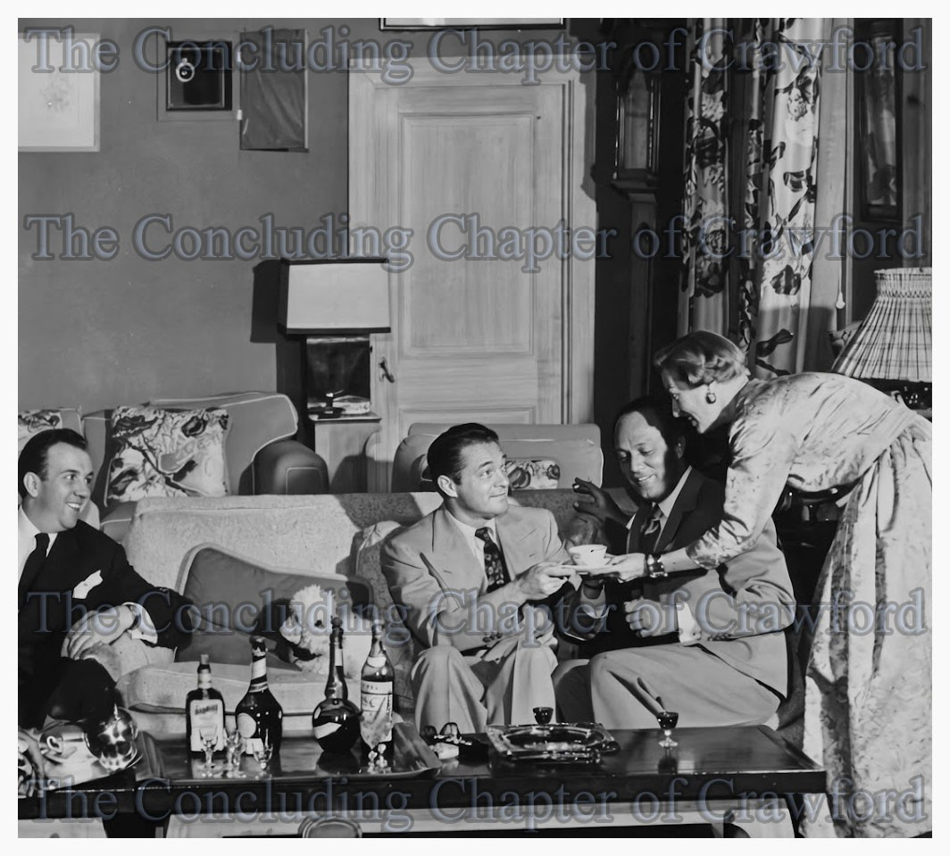 (Left to right) Vincent Sherman, Arthur Blake, Joan, Jimmy Shields and Irving Cohen
